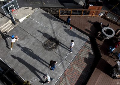 Long shadows are casted as members of Washington State University’s Delta Tau Delta fraternity shoot hoops on Tuesday afternoon in Pullman. Fraternity members said they were glad to finally see the sun so they could spend more time outside.
