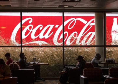 A Coca Cola distribution truck highlights the windows of the Compton Union Building as Washington State University students study inside Tuesday afternoon in Pullman.