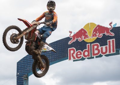 Justin Barcia clears a jump in the 450 Class Moto #2 race during the Lucas Oil Pro Motocross Championships at the Washougal MX Park on Saturday, July 27, 2019. (Zach Wilkinson/The Columbian)