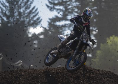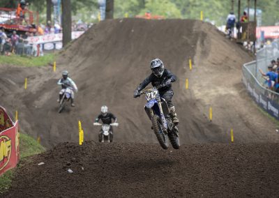 Michael Mosiman clears a jump in the 250 Class Moto #2 race during the Lucas Oil Pro Motocross Championships at the Washougal MX Park on Saturday, July 27, 2019. (Zach Wilkinson/The Columbian)