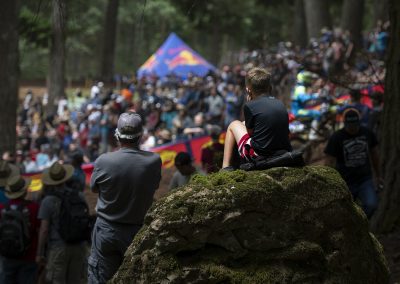 Seven-year-old Bravyn Donklson of Vancouver, right, watches the 450 Class Moto #1 compete during the Lucas Oil Pro Motocross Championships at the Washougal MX Park on Saturday, July 27, 2019. (Zach Wilkinson/The Columbian)