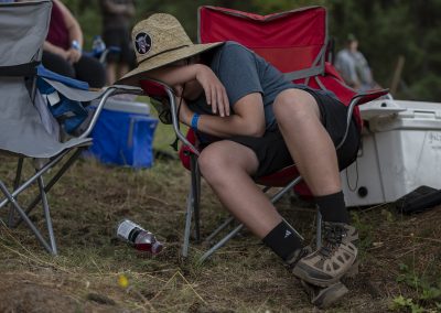Zakkary Hale, 13, of Bonney Lake, WA takes a nap in-between races during the Lucas Oil Pro Motocross Championships at the Washougal MX Park on Saturday, July 27, 2019. (Zach Wilkinson/The Columbian)