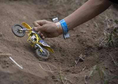 William Woehler, 7, of Lewiston, Idaho plays with a toy bike during the Lucas Oil Pro Motocross Championships at the Washougal MX Park on Saturday, July 27, 2019. (Zach Wilkinson/The Columbian)