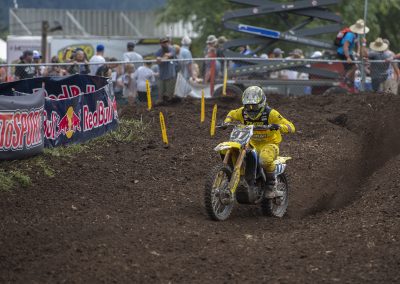 William Woehler, 7, of Lewiston, Idaho supports racer Adam Cianciarulo (92) during the Lucas Oil Pro Motocross Championships at the Washougal MX Park on Saturday, July 27, 2019. (Zach Wilkinson/The Columbian)